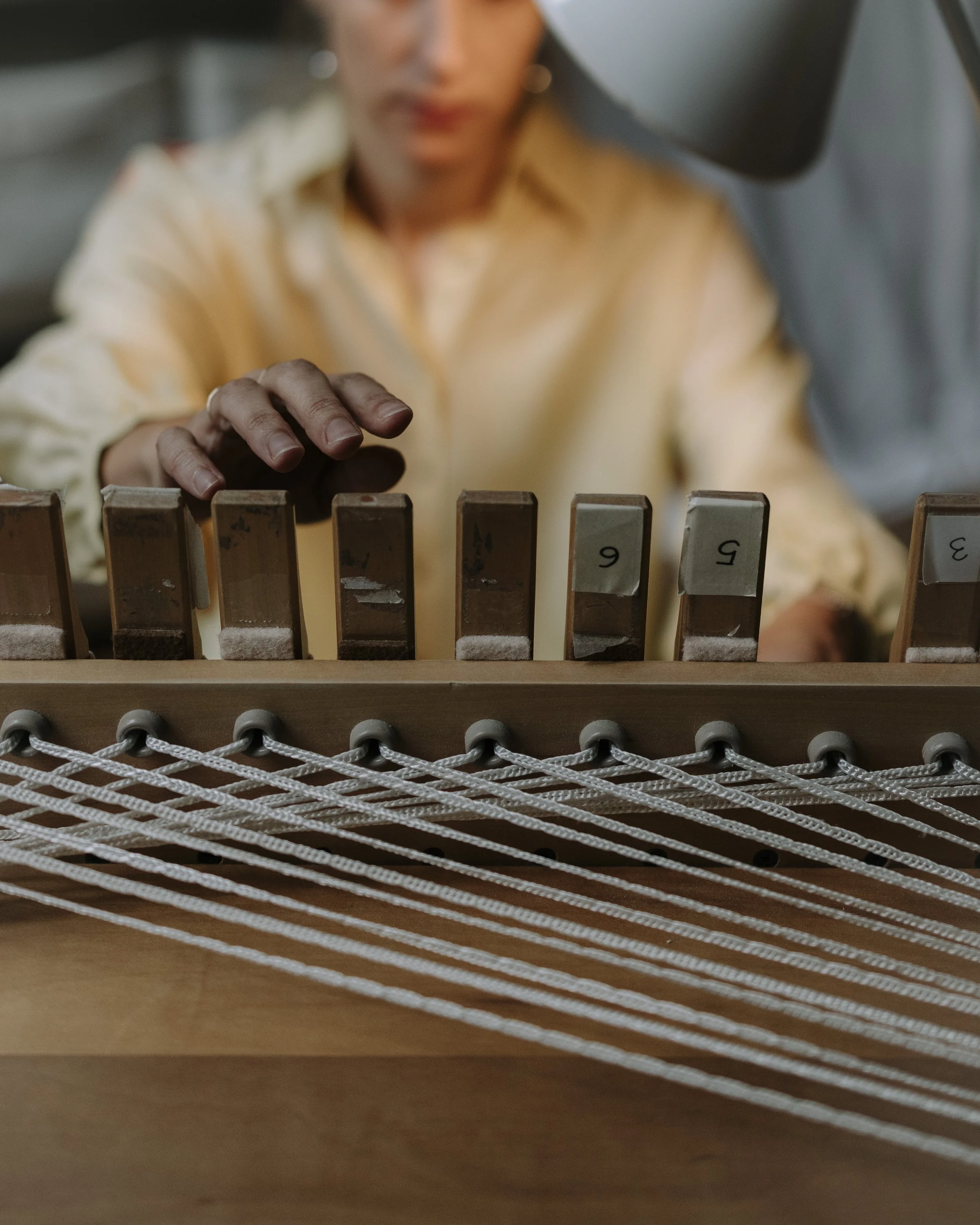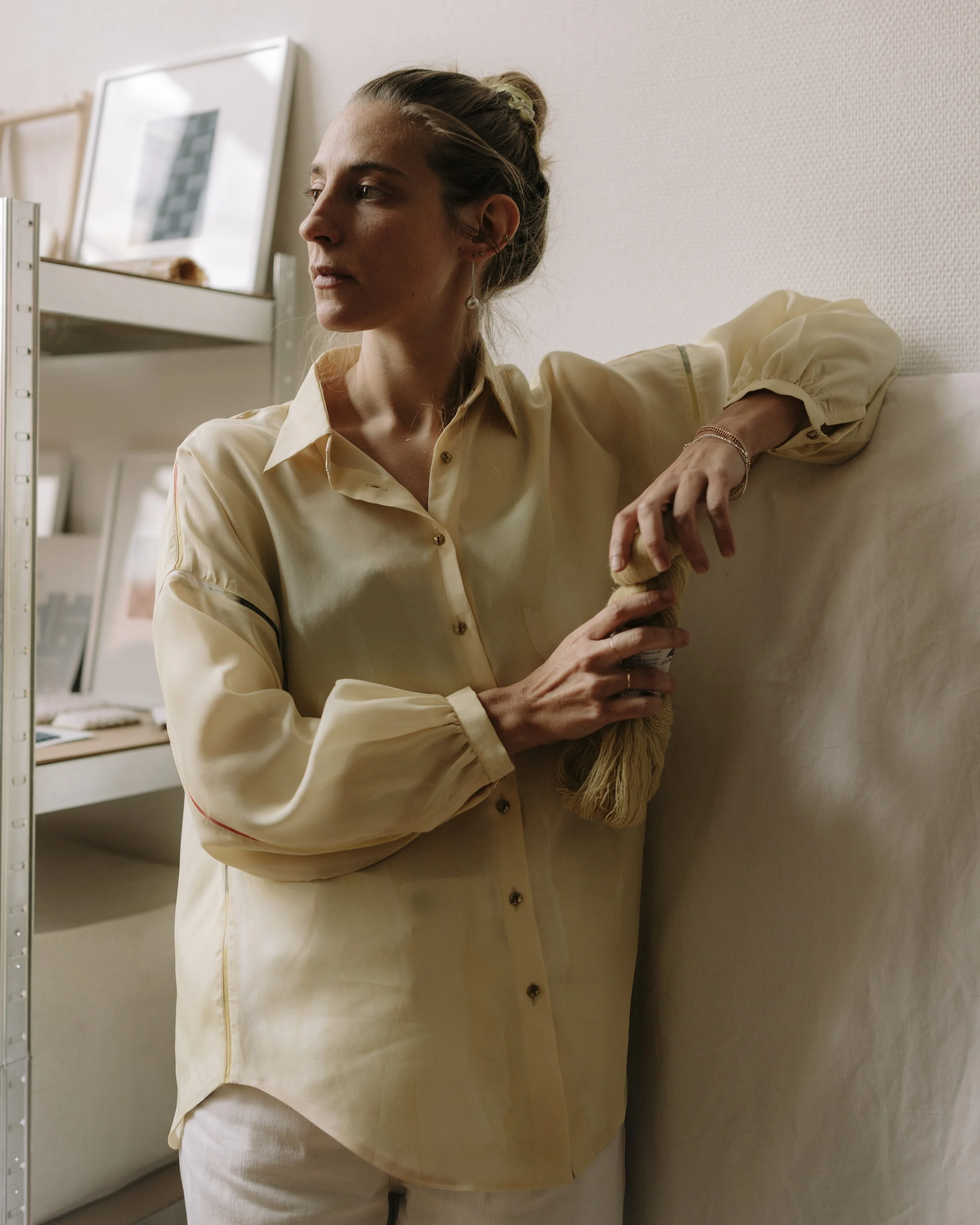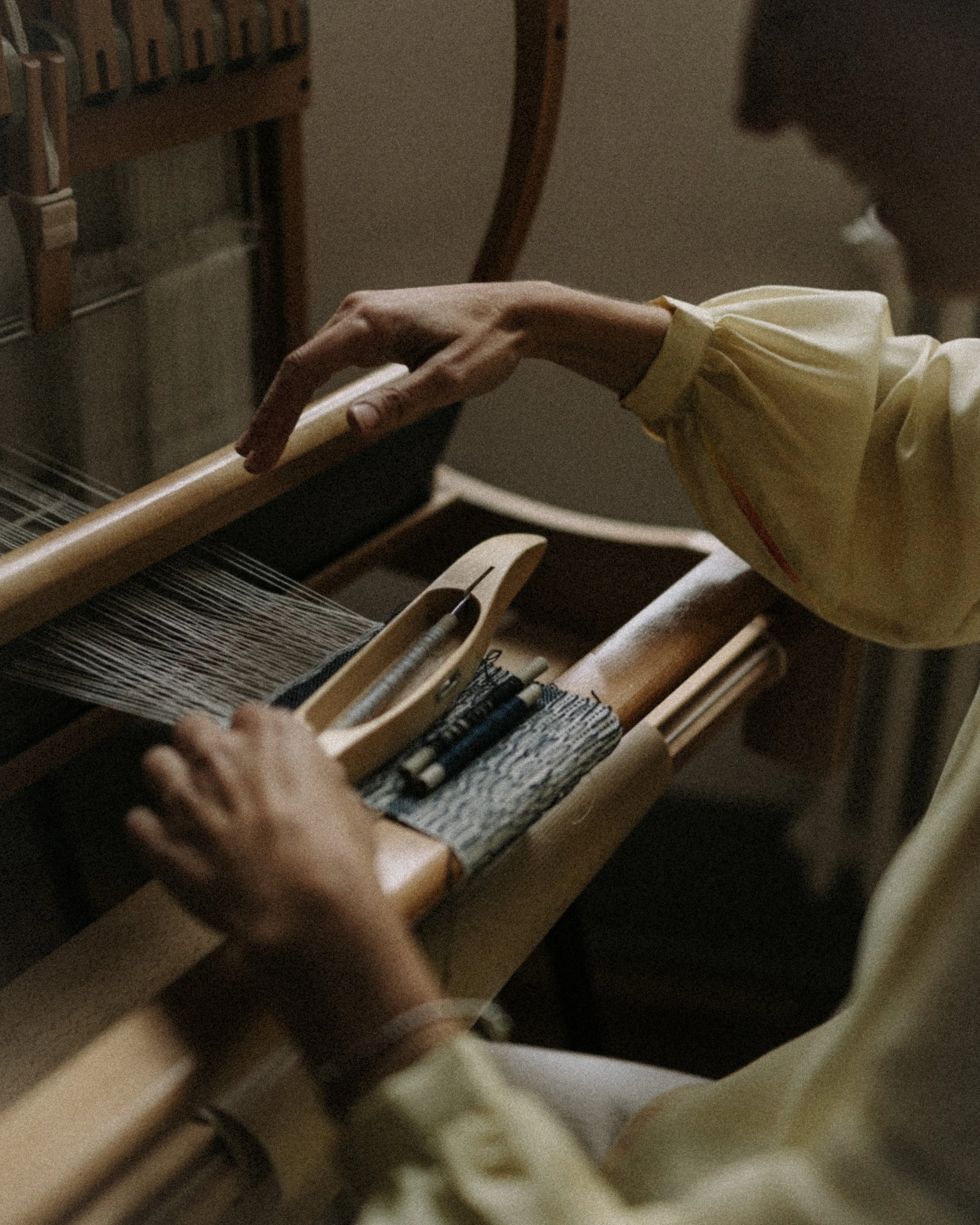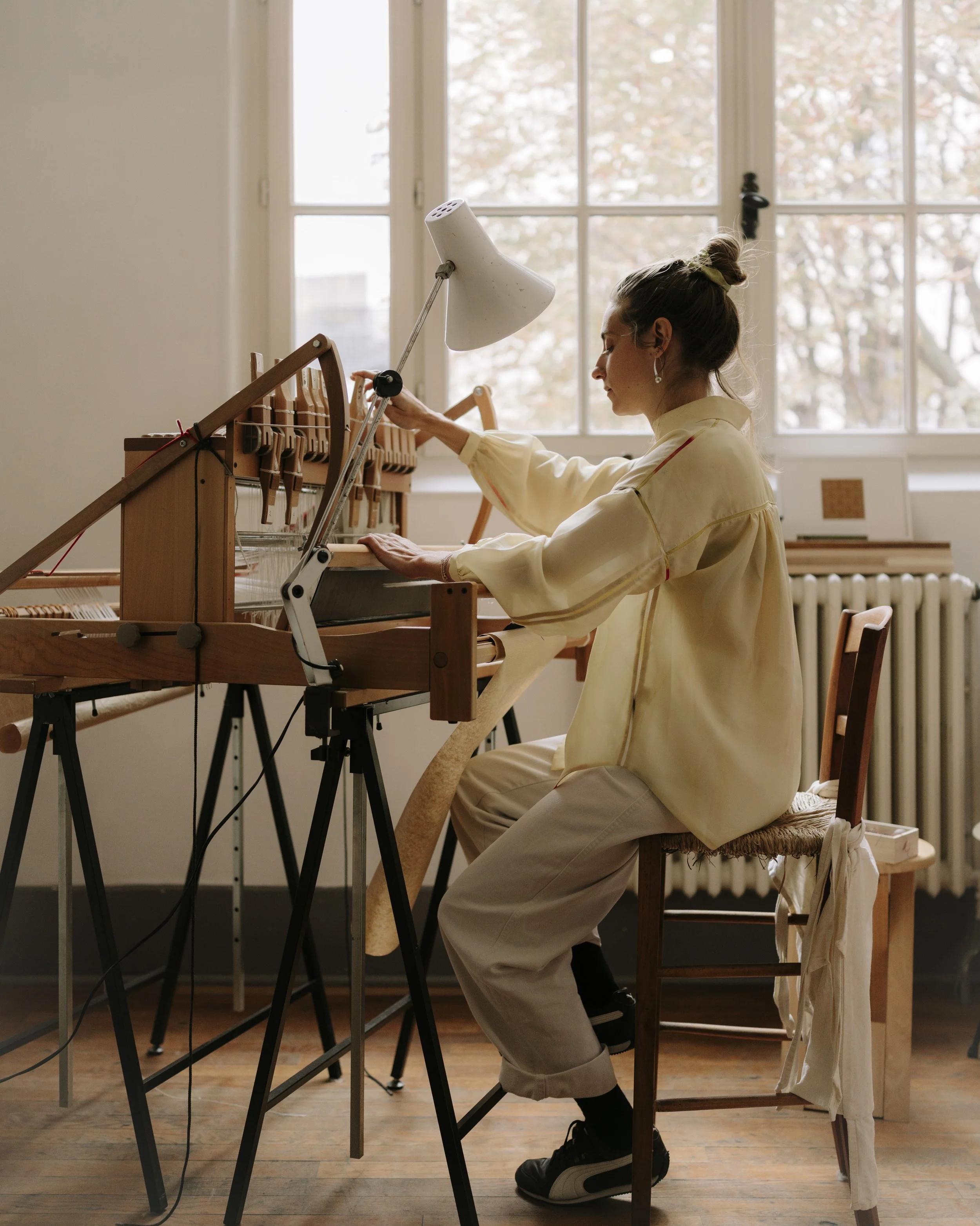 Hanako is a hand-weaver and textile designer. She is a graduate of the ENSAAMA and ENSCI-Les Ateliers in Paris. Her practice focuses on exclusive, made-to-measure artworks and hand-woven fabrics for interior design. She collaborates with artisans, product and furniture designers, fabric publishers, and interior designers. Through her delicate, meticulous, and sensorial designs, Hanako seeks to explore the architecture of fabric, the interaction of colours, and the material properties. Hanako pays great attention to sustainable sourcing and prioritizes local, ecological, and ethical manufacturing.